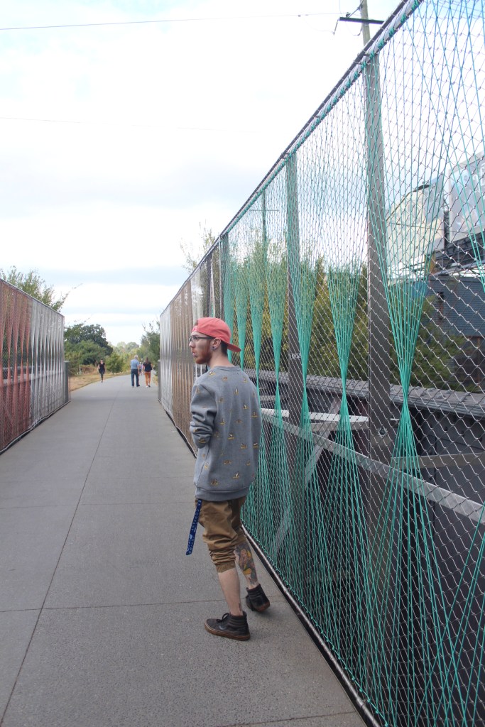 From that wall of graffiti, if you take a left and walk for a minute or so on the BeltLine, you’ll spot a bridge that overlooks a busy road and has been turned into an art piece. Ignoring the profanity scribbled on the bottom of the bridge in graffiti, the view is quite interesting from this bridge given the rope-like material stretched across the fence.