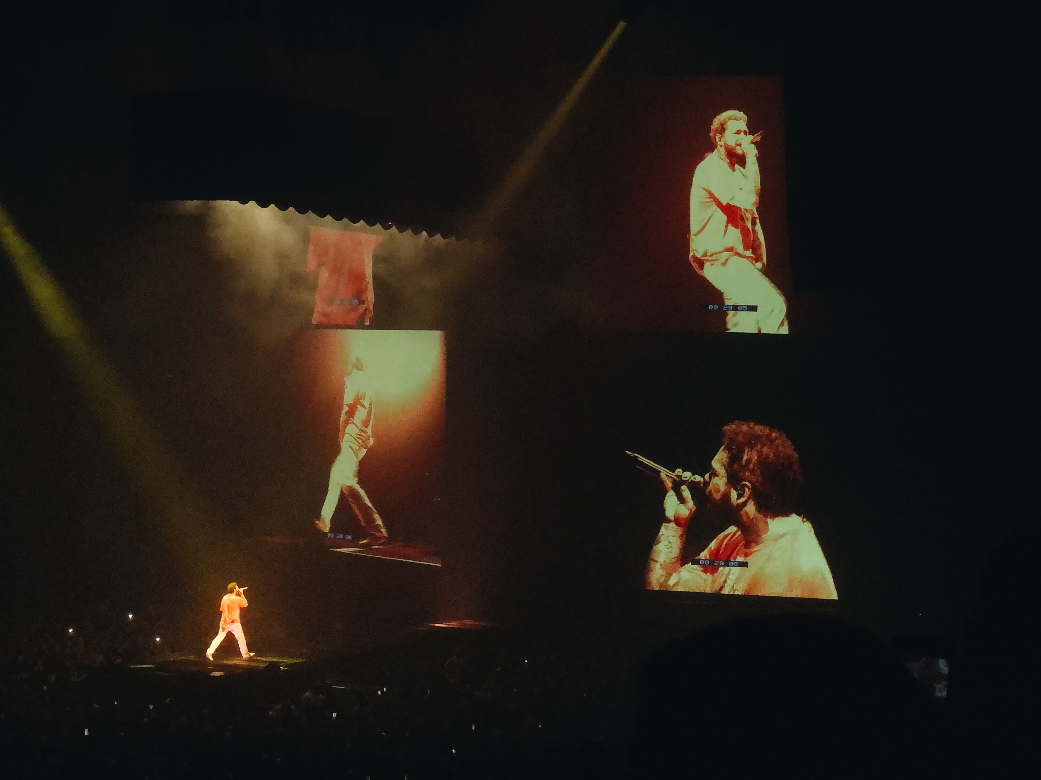 I had Googled for a list of songs that he would sing at the concert and actually found a list. He stuck to that list the entire concert and it helped me to see how much longer the concert would go on and which songs were next. He started with Hollywood’s Bleeding which is one of my favorite songs by him so I was just half crying and half scream singing right from the start. Next was Better Now, another favorite. Then Saint-Tropez and Goodbyes without Young Thug (thankfully). He sang Die For Me, Allergic, Candy Paint, Psycho, Enemies, Wow, and Paranoid before allowing us to take a breather with one of his slower songs, I Fall Apart. I Fall Apart was actually the first song I had really ever heard from him and I was enamored by his voice right then and there.