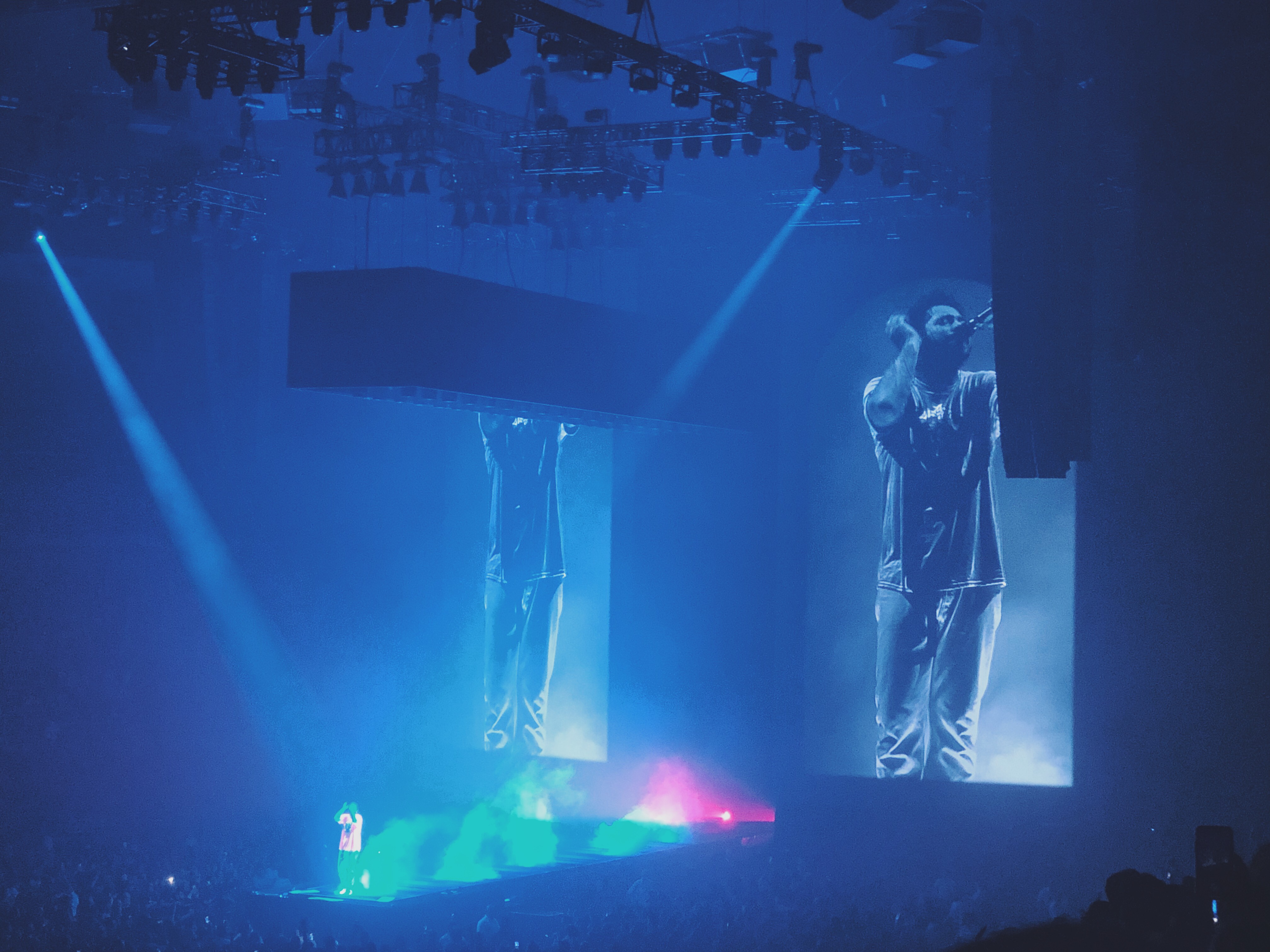 My best friend and I were in section 103 and has aisle seats, which allowed me to dance to my hearts content. Most people around us didn’t really care for Tyler Yaweh or Swae Lee, which were the opening acts. My best friend is completely clueless on music that isn’t alt rock, early 2000’s emo, or metal so she was really out of her element there. I was just anxiously waiting for Post to come on stage. It didn’t take too long for the entire area to become hazy from the stage’s fog machine and from people who had sneakily brought marijuana in. It got a bit stuffy for a while but it quickly cleared up once the lights went down for the final time and Post Malone made his grand entrance.